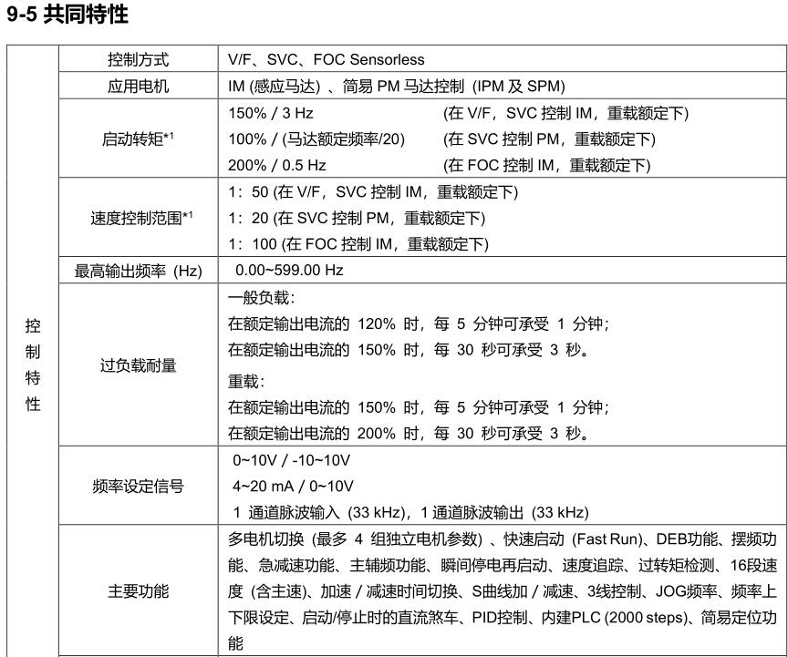 高頻 1,500Hz 輸出 (高速機種,僅支持感應電機 V/f 控制)