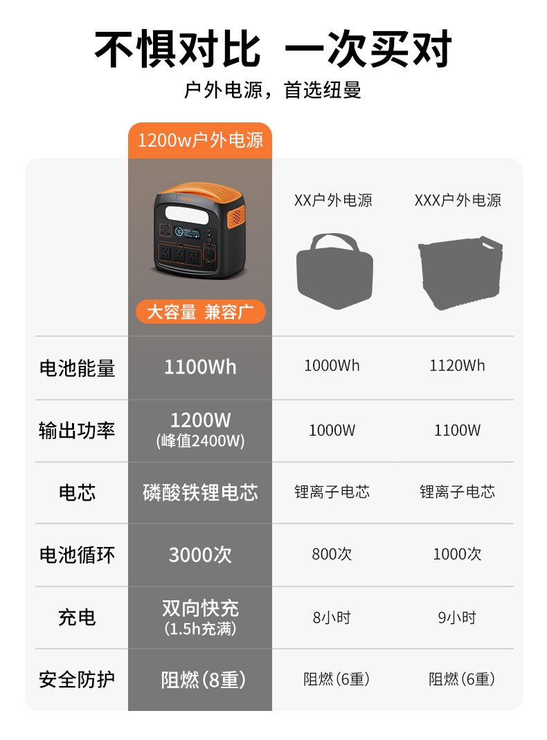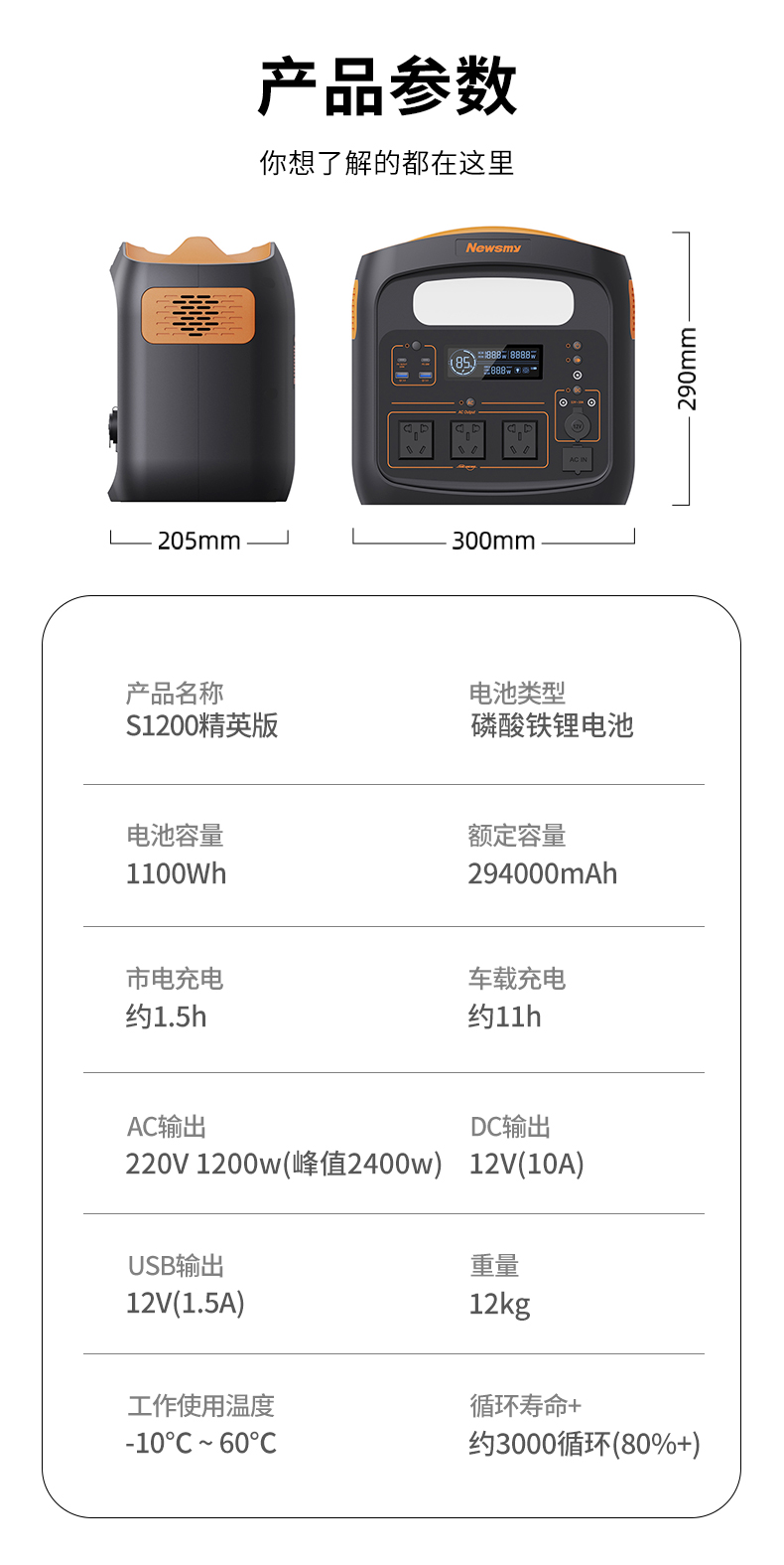 Newsmy紐曼戶外儲能電源S1200 快充1.3h 1100Wh/1200w 三種充電方式 |