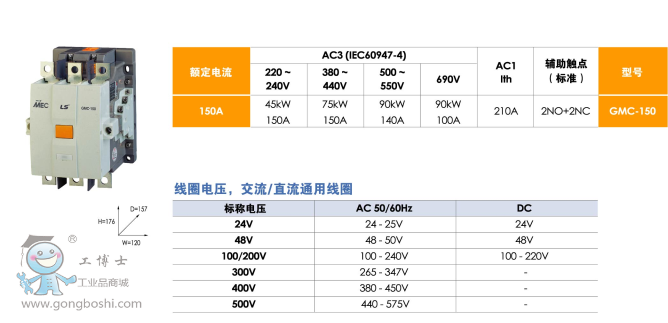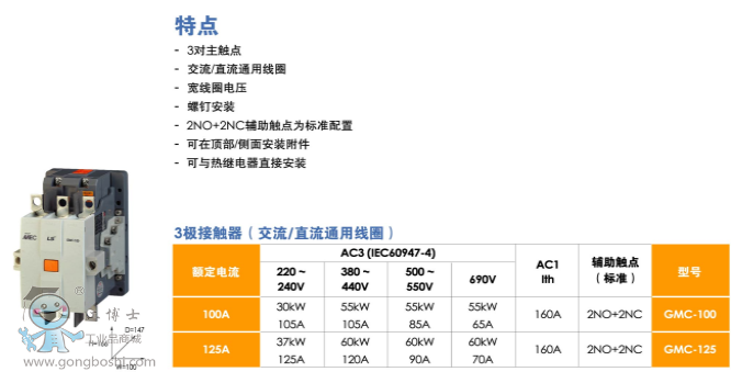 韓國LS電氣接觸器GMC-220 AC/DC100-240V 2a2b三極交直流通用接觸器LS產電 |