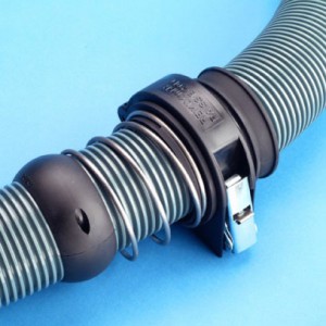 All of the REIKU Spring Holders act like a “halo” allowing the conduit to pass through them as the conduit moves back and forth to service the movements of the Robot. At the rear of the Spring Holders there is a groove where the spring is attached and then a PAPRB style of REIKU Protector is attached to the conduit behind the spring. When the Robot extends to positions that require more conduit, it pulls the conduit from a “safe area” behind the Robot. When the conduit is pulled the Protector which is locked onto the corrugations of the conduit engages on the rear of the spring creating a load and once the Robot returns to a position where this additional length of conduit is not required the conduit returns back to the rear of the Robot.
