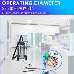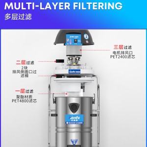 DL-1245W是一款潔凈室用吸塵器,散熱上采用上下氣道分離,延長了排風的路徑及時間,所產生的聲音相比普通吸塵器聲音小;有可達45L左右的不銹鋼材質制成的集塵桶,同時它配有前輪為萬向輪并帶剎車的不銹鋼車架使用起來靈活輕便;多層過濾裝置,使排出來的空氣相對潔凈。