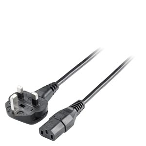 AC 低散熱設備電纜, 英國, 90° 公 BS 1363 至 180° 母 (3 極,C13)用于 英國, 用于設備并帶有相應的 接口、長度和 更多信息, 數量和內容: 參見技術參數