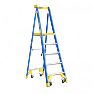 美國WERNER穩耐 玻璃鋼單側平臺人字梯 帶輪自鎖 P170-5CN FG