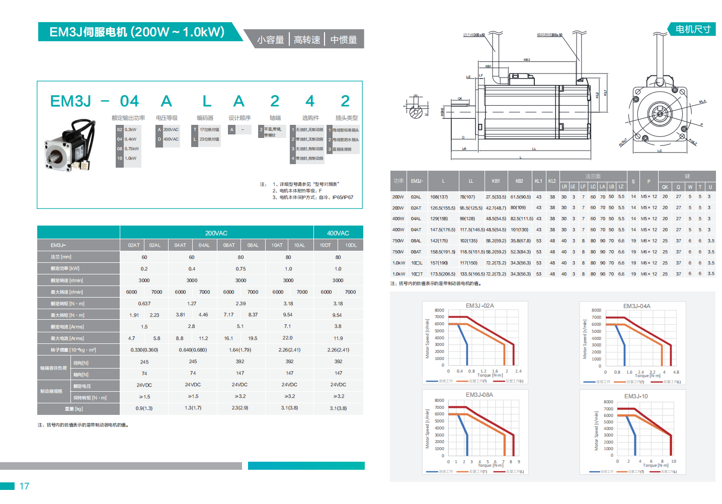 埃斯頓 EM3J 中慣量 3000r/min 伺服電機 功率1.0KW EM3J-10DTA241