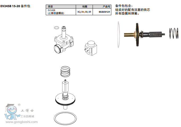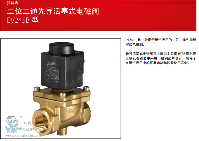 丹佛斯Danfoss EV245B, 活塞型先導式2位/2通蒸汽電磁閥