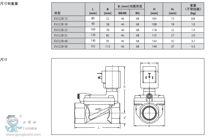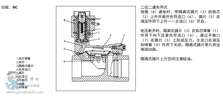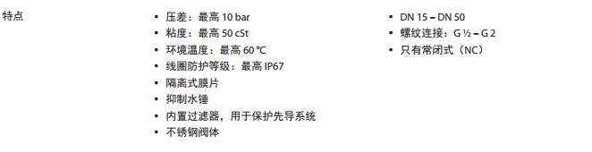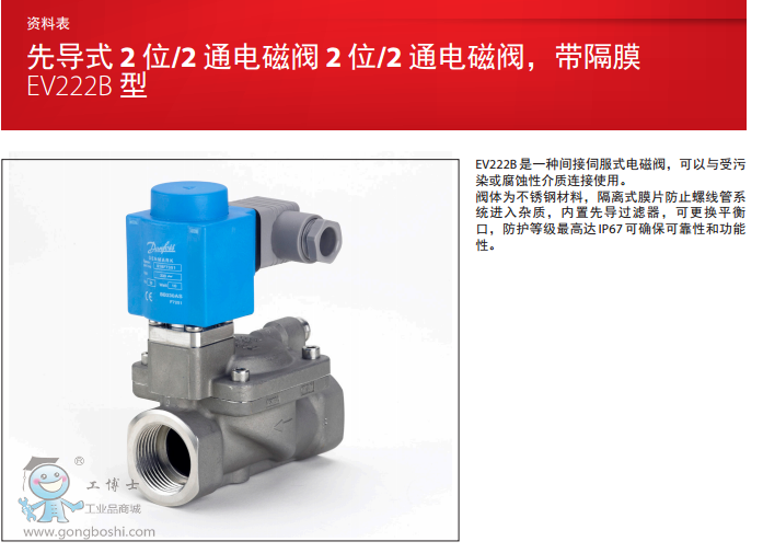 丹佛斯Danfoss EV222B, 先導式 2 位/2 通電磁閥 2 位/2 通電磁閥,帶隔膜