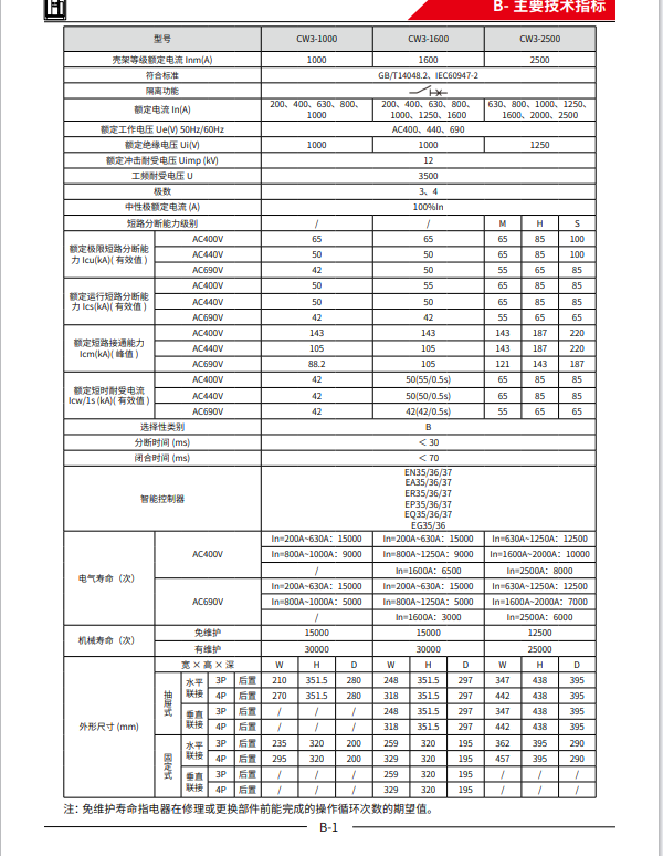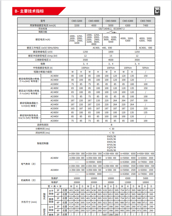 CW3-5000M/3P-2500A EA35/固定式控制電壓:AC230V/分勵電壓AC230V/合閘電壓AC230V/電操電壓AC230V 4組轉換觸頭