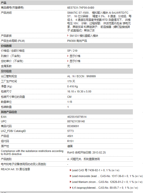 西門子PLC 6ES7 531-7KF00-0AB0 模擬輸入模塊 S7-1500