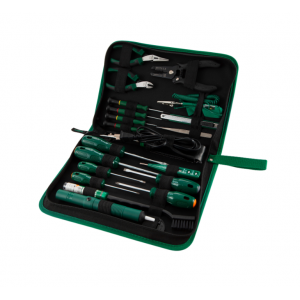 ● 此電子工具組套是一種小型多用途的維修包。為廣大電子工程師設備工程師技術員等基本工作需要所設計.尤其適合在防靜電的工作環境中使用。所有配置工具均放置在一個滌綸拉鏈工具包中.方便攜帶和收納。