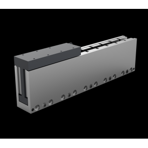 無鐵芯直線電機由線圈組成的電機動子和永磁體的定子組成,由于動子沒有鐵芯,因此其重量輕,動子和定子之間沒有磁吸力,沒有齒槽效應(yīng),可以實現(xiàn)很高的加速度和運行平穩(wěn)性;動子和定子之間為非接觸式,不存在機械傳動限制,因此具有高系統(tǒng)動態(tài)性能、平穩(wěn)的運行速度和高定位精度、無磨損或免維護、超長行程等優(yōu)點。