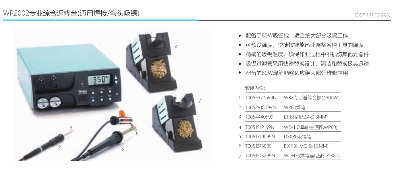 威樂(weller)WR2002專業綜合返修臺(通用焊接/彎頭吸錫)T0053380699N