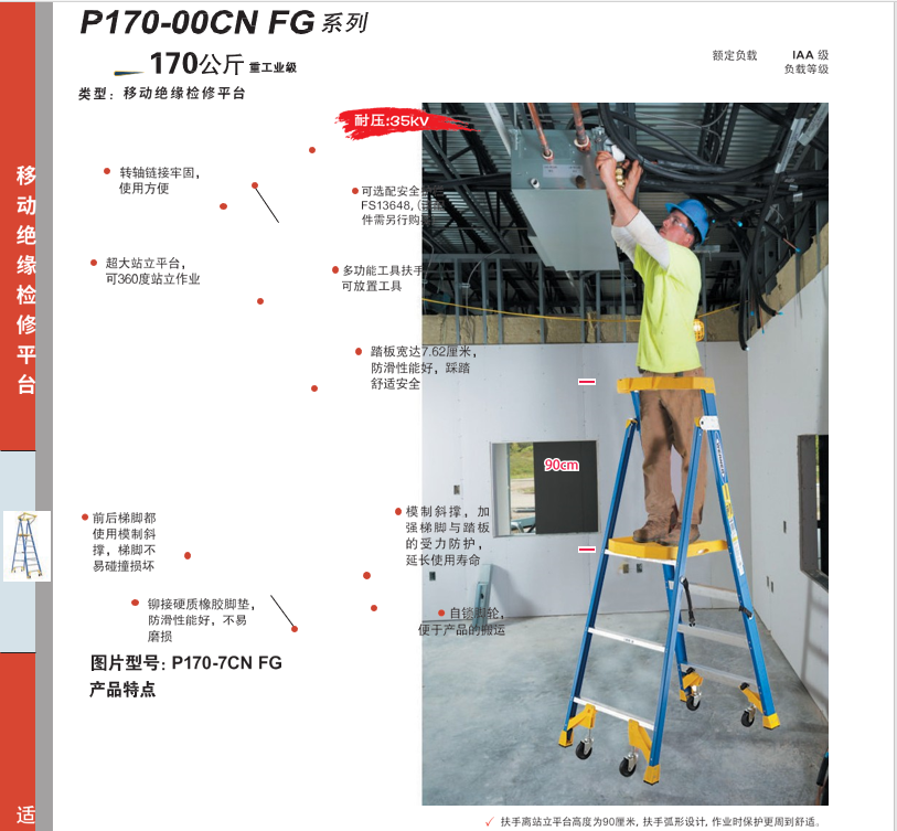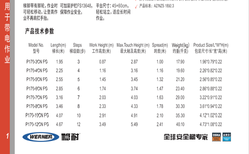 穩耐(WERNER)玻璃鋼單側6步平臺人字梯P170-7CN FG