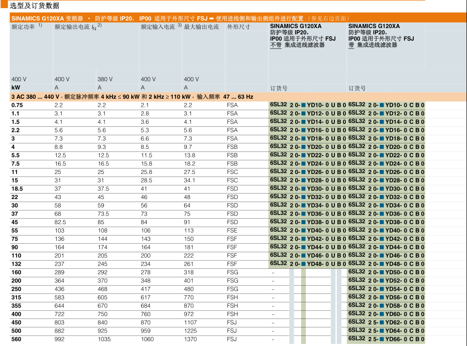 西門(mén)子G120XA變頻器 6SL3220-1YD48-0UB0 132KW 380-440V
