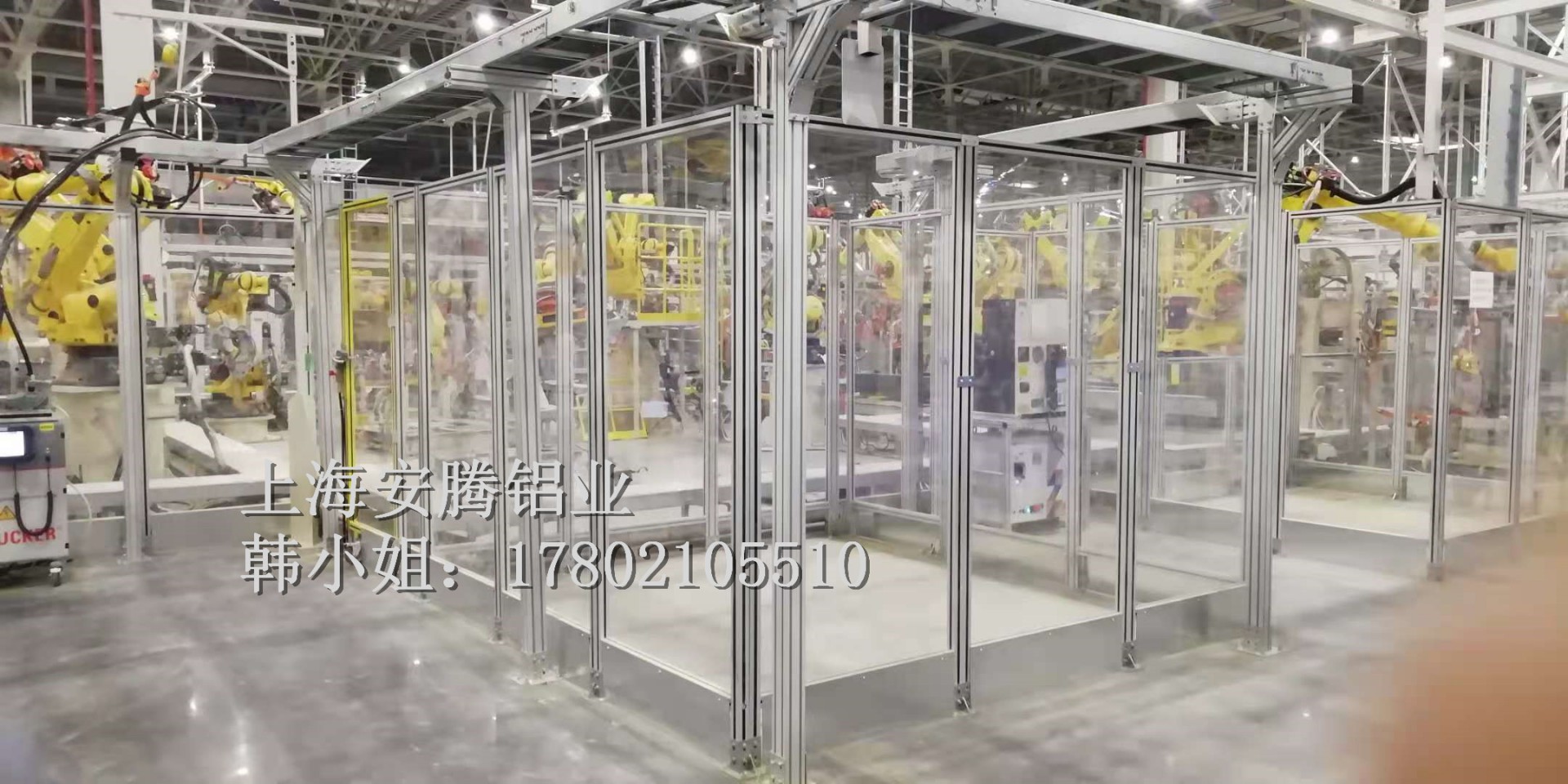 上海安騰鋁業韓小姐 專業承接汽車生產流水線安全圍欄,機器人弧焊房,機器人打磨房等工業防護項目::工業鋁型材框架安全圍欄,機器人弧焊房案例展示: