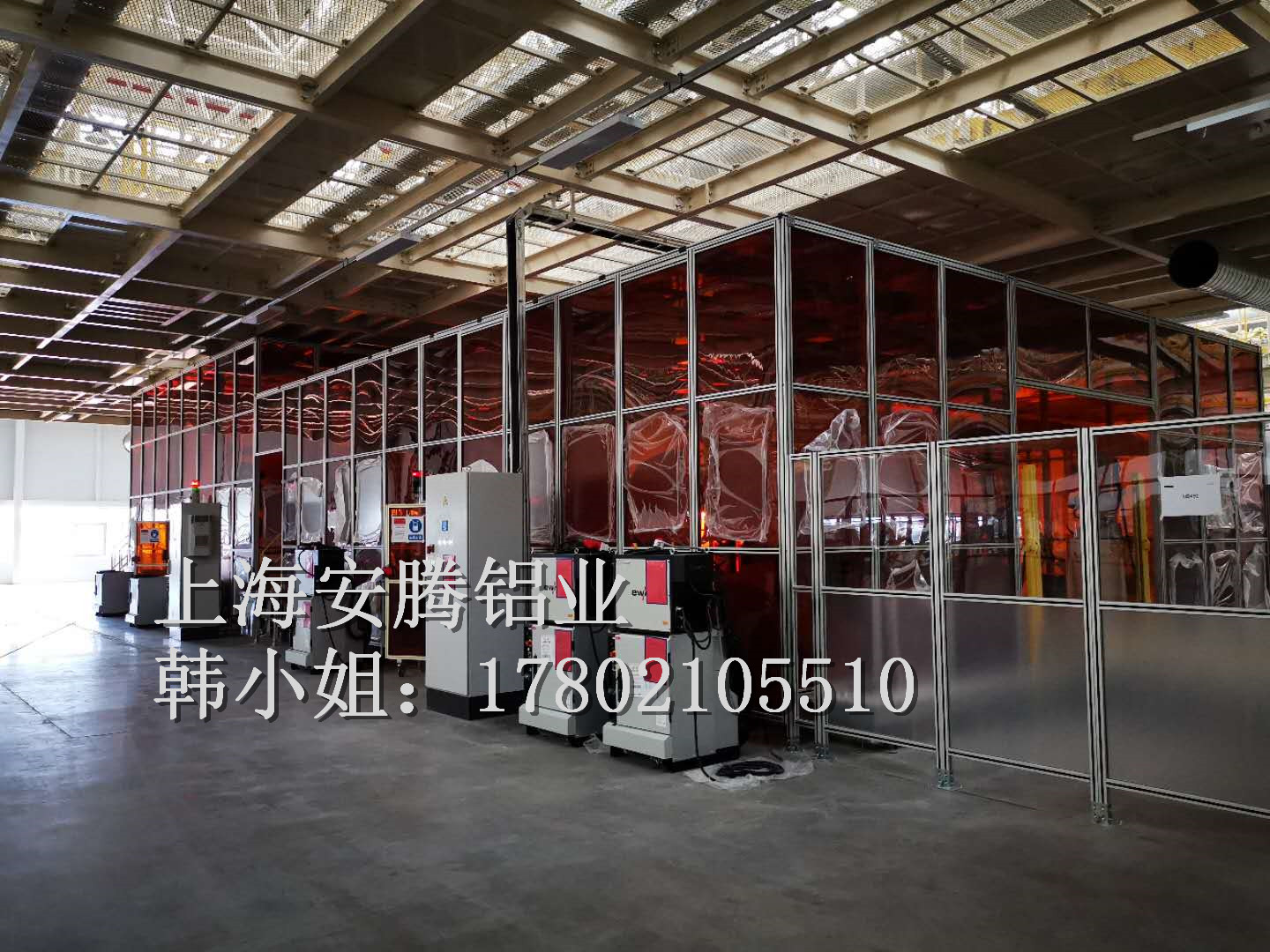 上海安騰鋁業韓小姐 專業承接汽車生產流水線安全圍欄,機器人弧焊房,機器人打磨房等工業防護項目::工業鋁型材框架安全圍欄,機器人弧焊房案例展示: