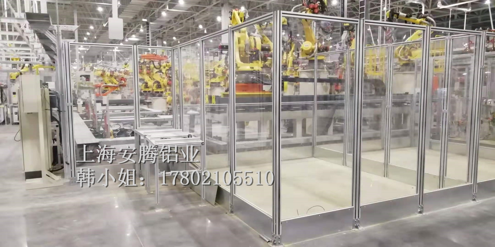 上海安騰鋁業韓小姐 專業承接汽車生產流水線安全圍欄,機器人弧焊房,機器人打磨房等工業防護項目::工業鋁型材框架安全圍欄,機器人弧焊房案例展示: