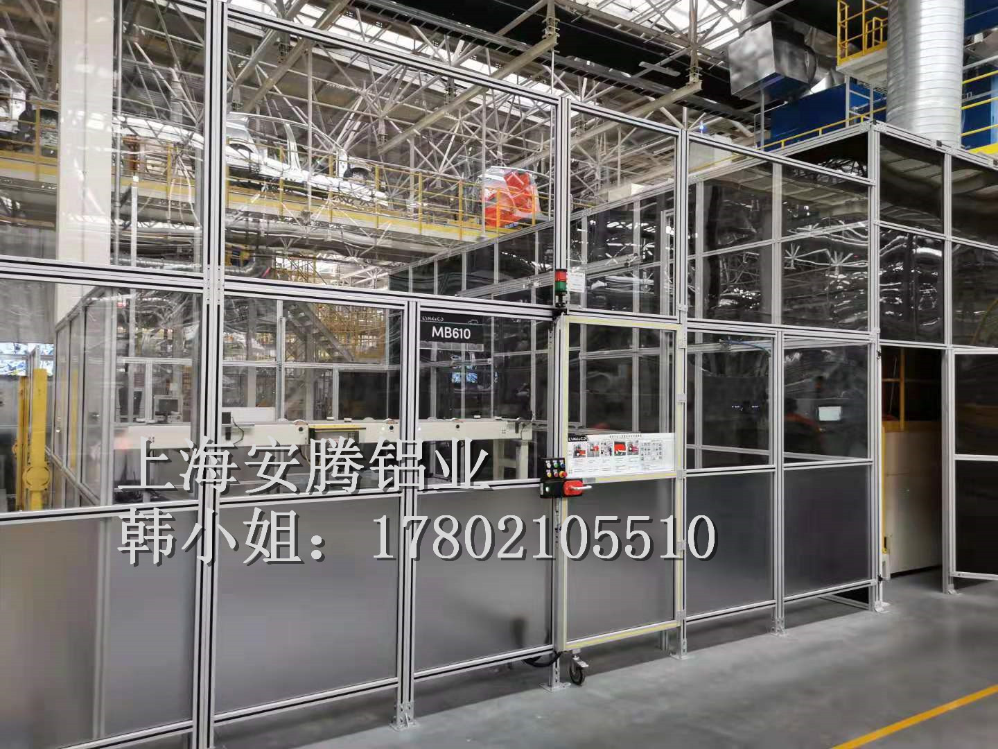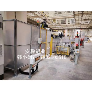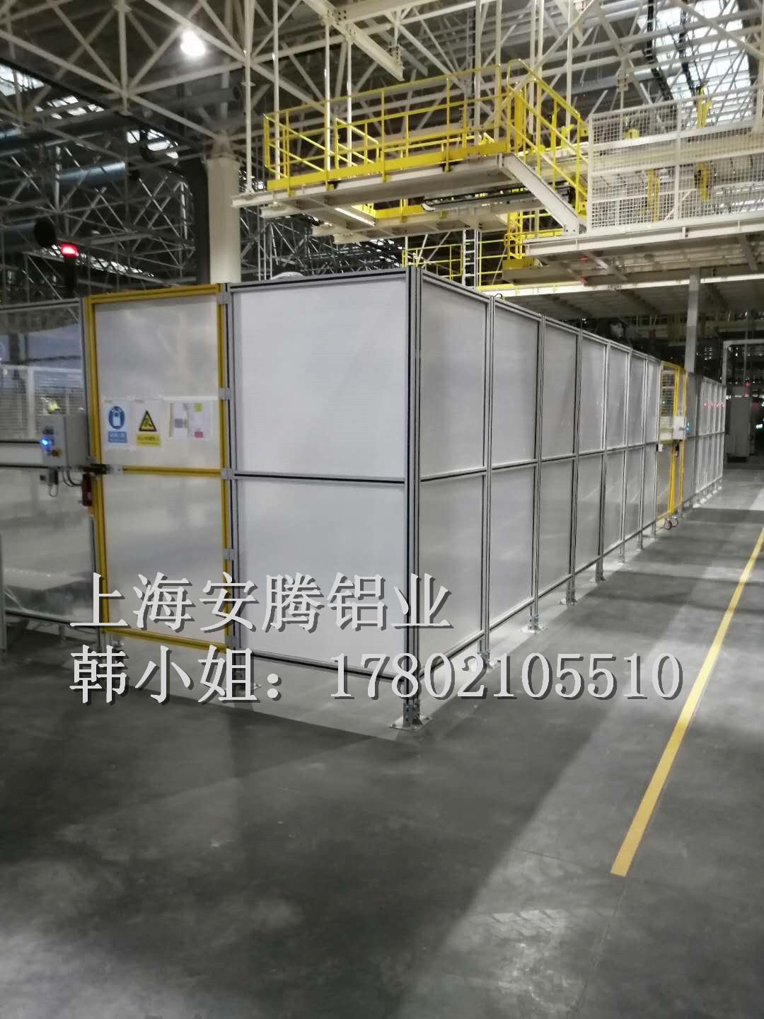 上海安騰鋁業(yè)韓小姐 專業(yè)承接汽車生產(chǎn)流水線安全圍欄,機(jī)器人弧焊房,機(jī)器人打磨房等工業(yè)防護(hù)項(xiàng)目::工業(yè)鋁型材框架安全圍欄,機(jī)器人弧焊房案例展示: