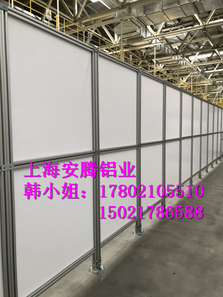 上海安騰鋁業(yè)韓小姐 專業(yè)承接汽車生產(chǎn)流水線安全圍欄,機器人弧焊房,機器人打磨房等工業(yè)防護項目::工業(yè)鋁型材框架安全圍欄,機器人弧焊房案例展示: