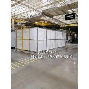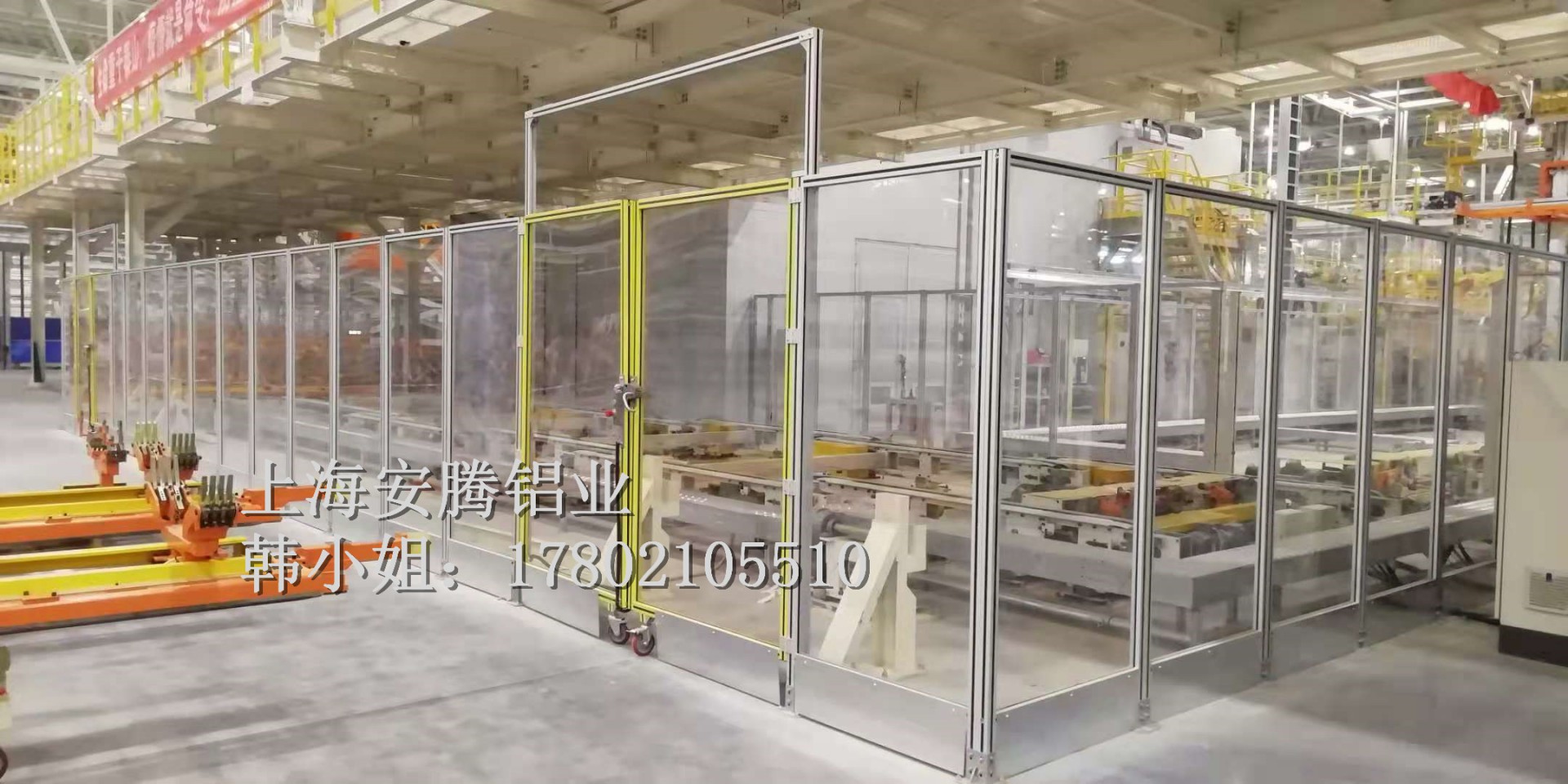 上海安騰鋁業(yè)韓小姐 專業(yè)承接汽車生產(chǎn)流水線安全圍欄,機器人弧焊房,機器人打磨房等工業(yè)防護項目::工業(yè)鋁型材框架安全圍欄,機器人弧焊房案例展示: