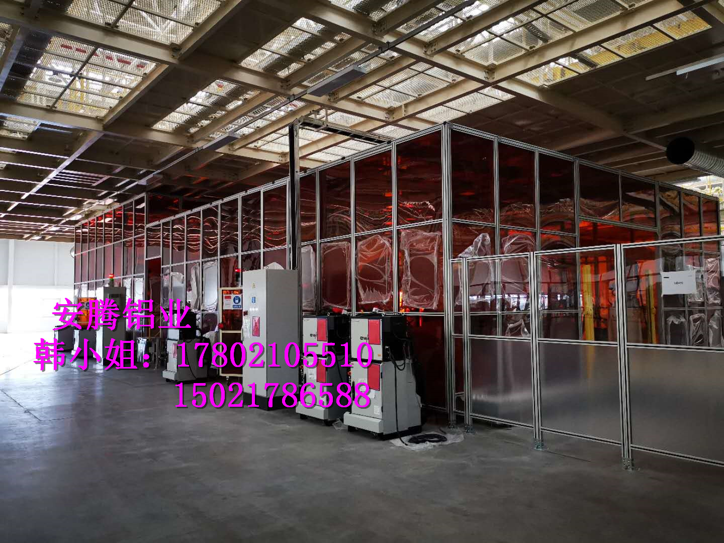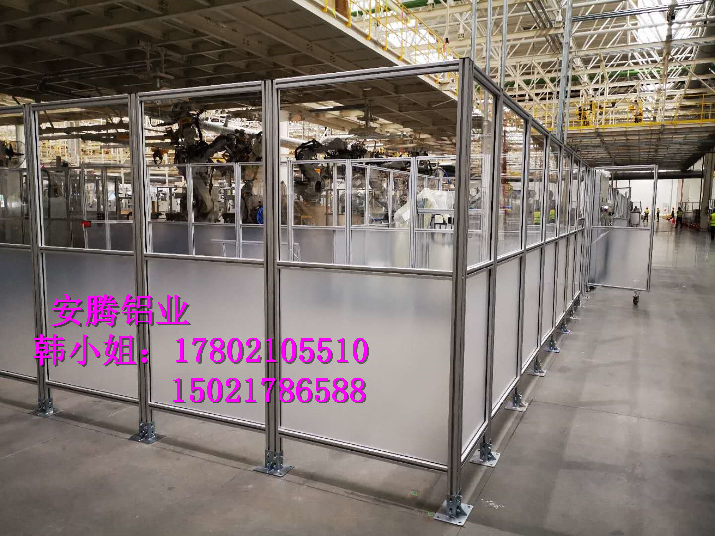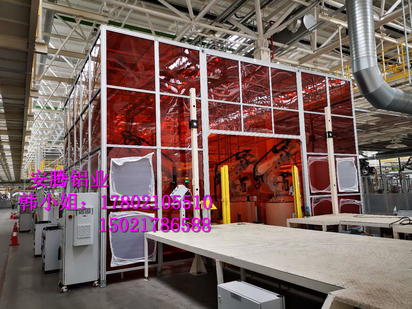 上海安騰鋁業韓小姐 專業承接汽車生產流水線安全圍欄,機器人弧焊房,機器人打磨房等工業防護項目::工業鋁型材框架安全圍欄,機器人弧焊房案例展示: