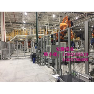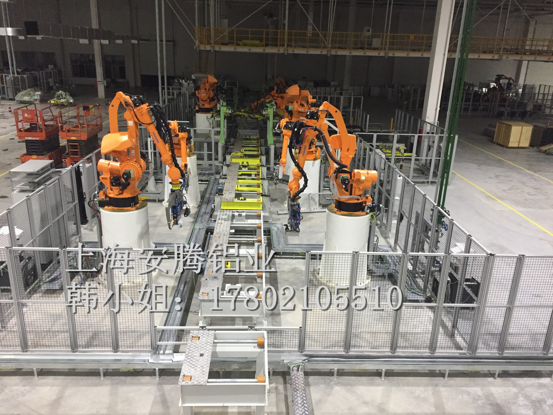 上海安騰鋁業(yè)韓小姐 專業(yè)承接汽車生產(chǎn)流水線安全圍欄,機(jī)器人弧焊房,機(jī)器人打磨房等工業(yè)防護(hù)項(xiàng)目::工業(yè)鋁型材框架安全圍欄,機(jī)器人弧焊房案例展示: