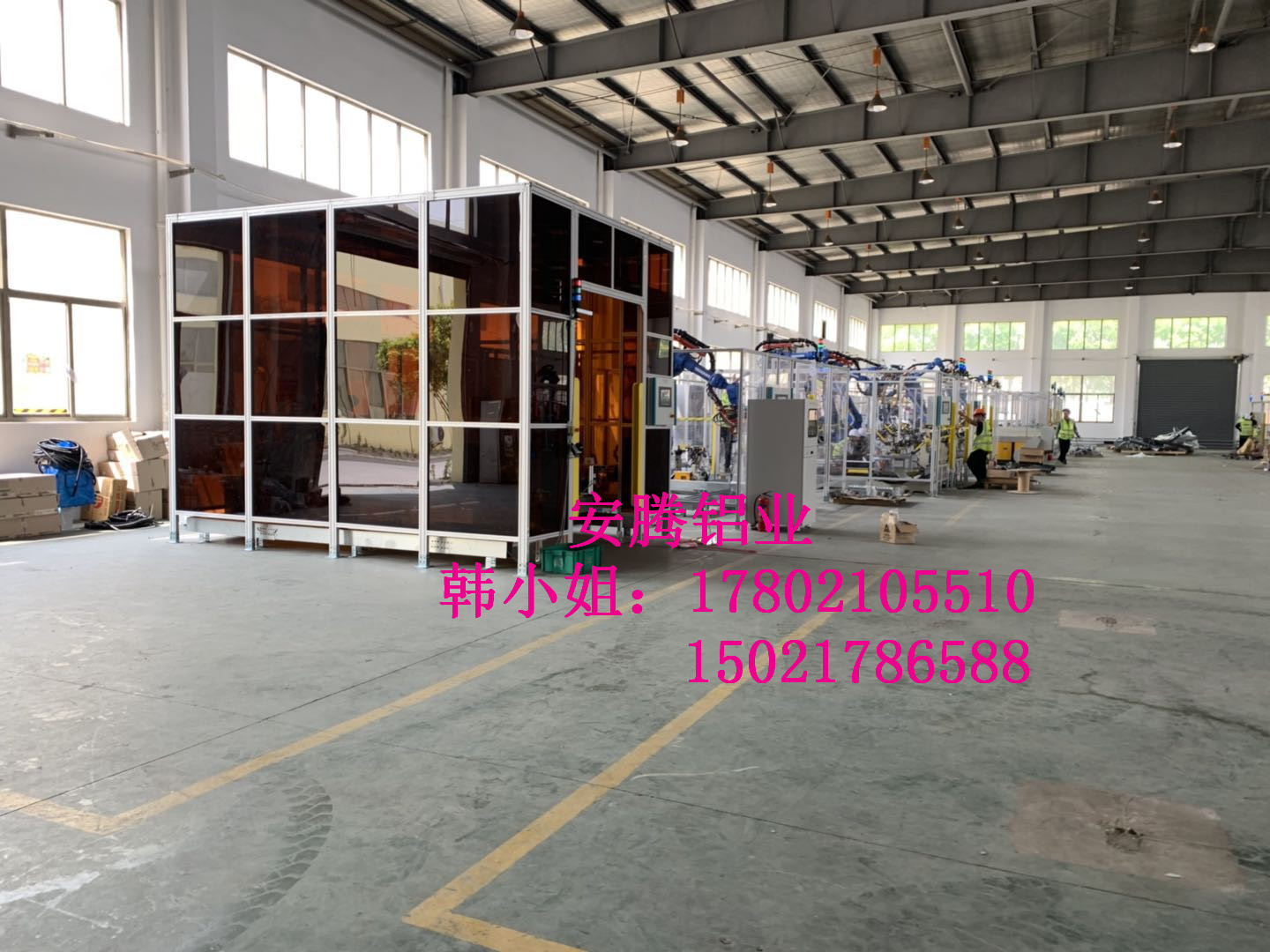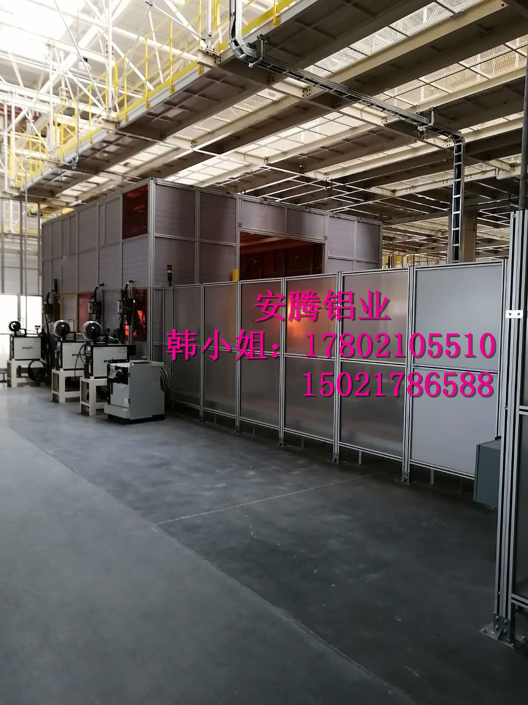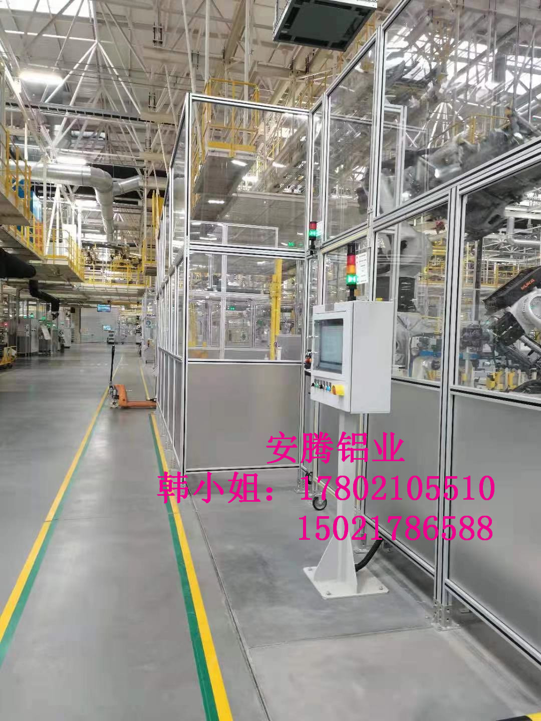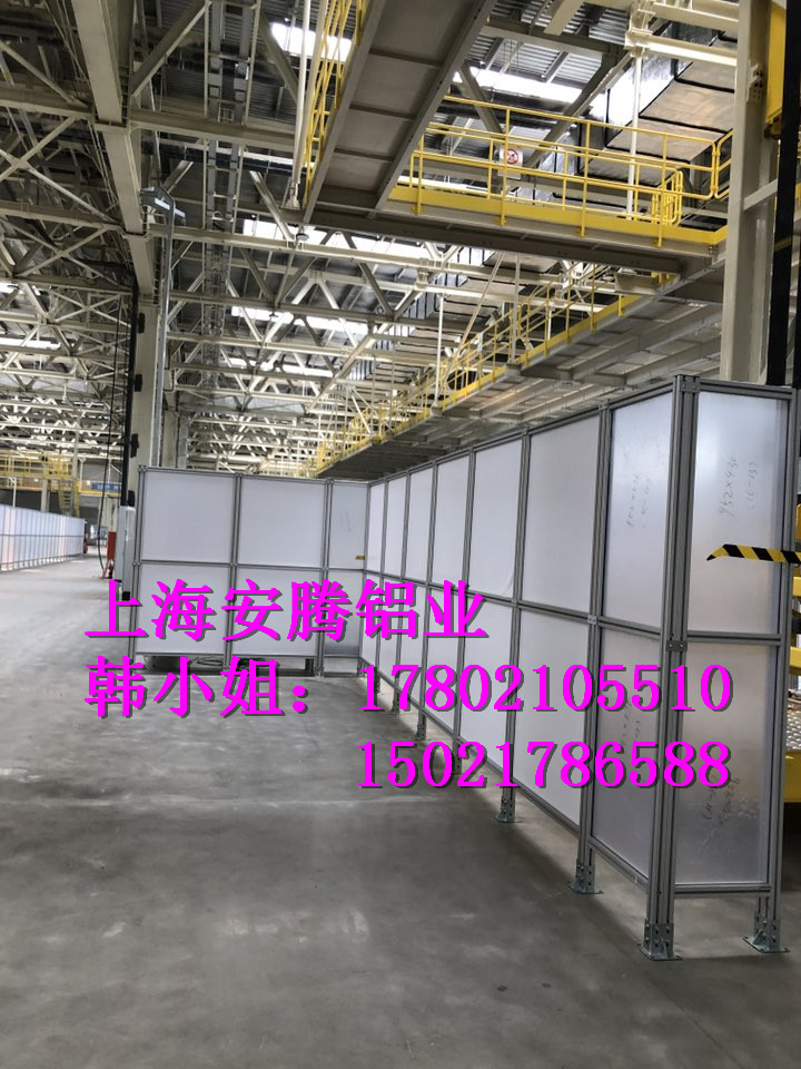 上海安騰鋁業韓小姐 專業承接汽車生產流水線安全圍欄,機器人弧焊房,機器人打磨房等工業防護項目::工業鋁型材框架安全圍欄,機器人弧焊房案例展示: