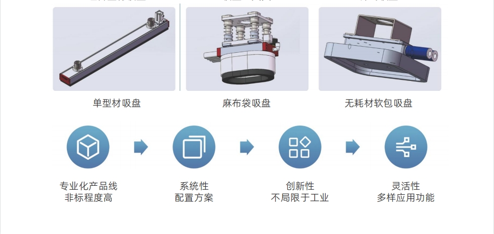 工博士真空吸盤系統(tǒng)致力于真空搬運(yùn)技術(shù)在堆垛、拆垛、搬運(yùn)、裝箱等不同應(yīng)用領(lǐng)域,為