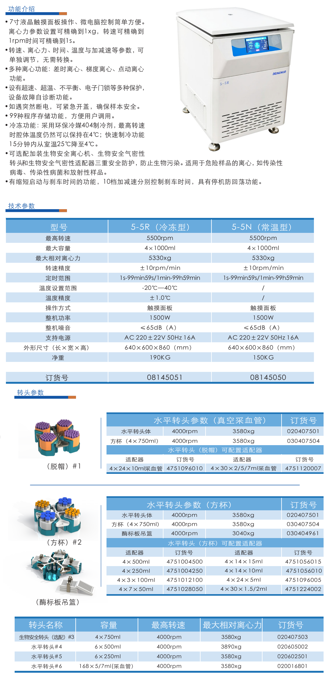 恒諾低速離心機-落地式大容量低速離心機5-5R(冷凍型)