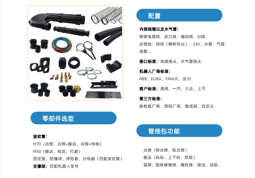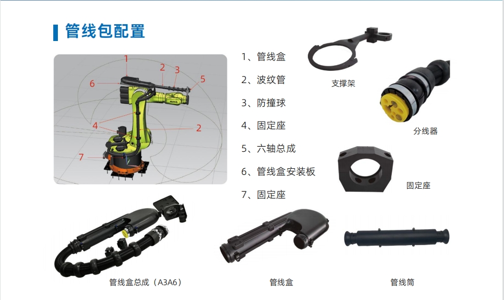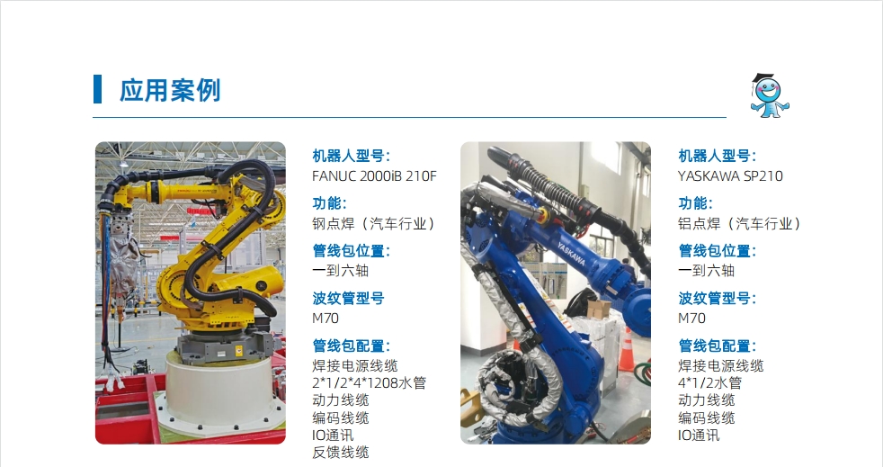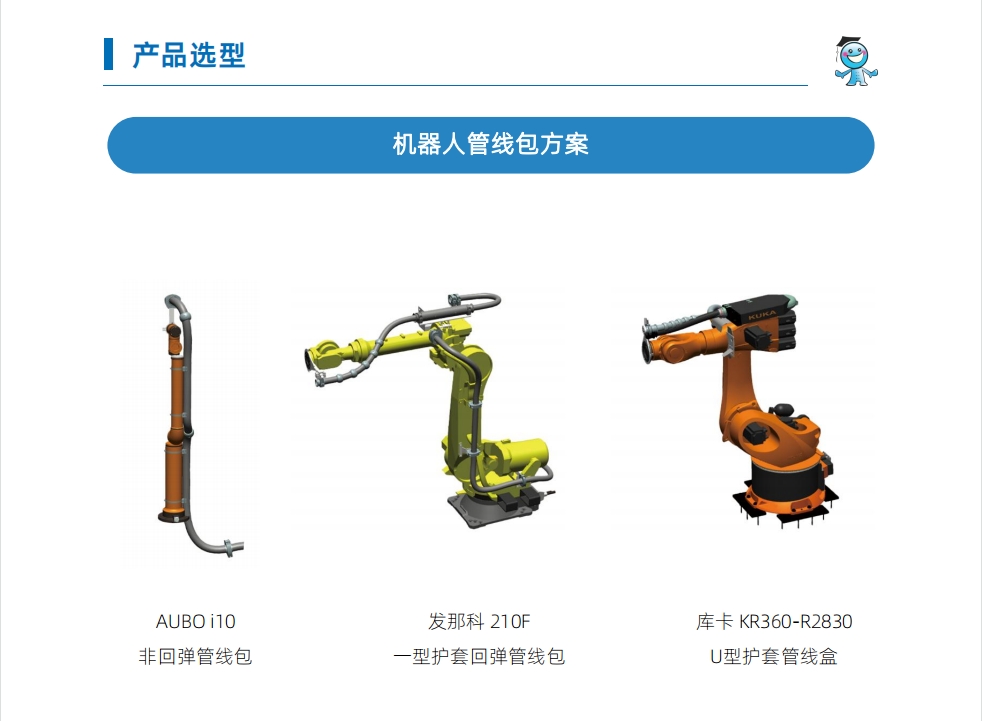 工博士管線包,用更優的結構設計來減少對機器人運動軌跡的影響,用更好的產品質量來保護機器人的電纜系統,減少機器人損壞和電源的老化,并顯著提升整體生命周期。