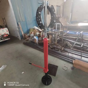 6、在合適位置挖好坑,先把托盤插入坑內,再把底座頂在托盤上,然后調節千斤頂,把線桿調直即可