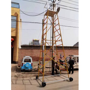 梯身及底架均可快速分解,便于搬遷。帶有防制動器,既防傾倒,又便于在斜道上作業。工作臺可以調節高度,三擋調節, 便于運輸梯車高度用戶可根據情況自行確定。