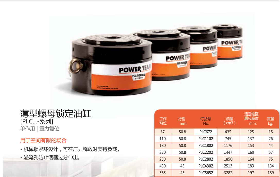 SPX斯必克Power team派爾迪薄型螺母鎖定油缸PLC672