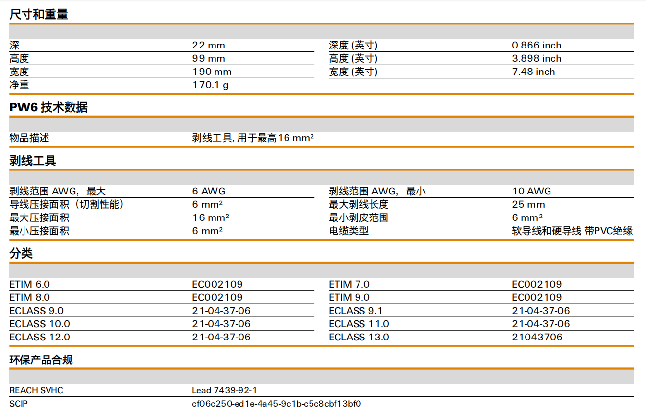 導線壓接面積(切割性能): 6 mm²