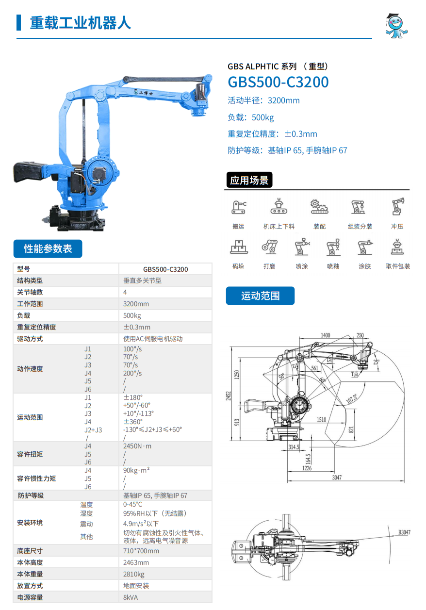 工博士 ALPHTIC 系列 (重載型)GBS500-C3200負載:500kg臂展:3200mm |