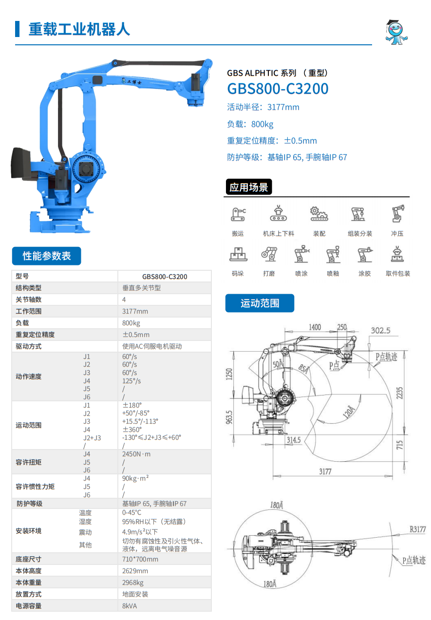 工博士 ALPHTIC 系列 (重載型)GBS800-C3200負載:800kg臂展:3177mm |