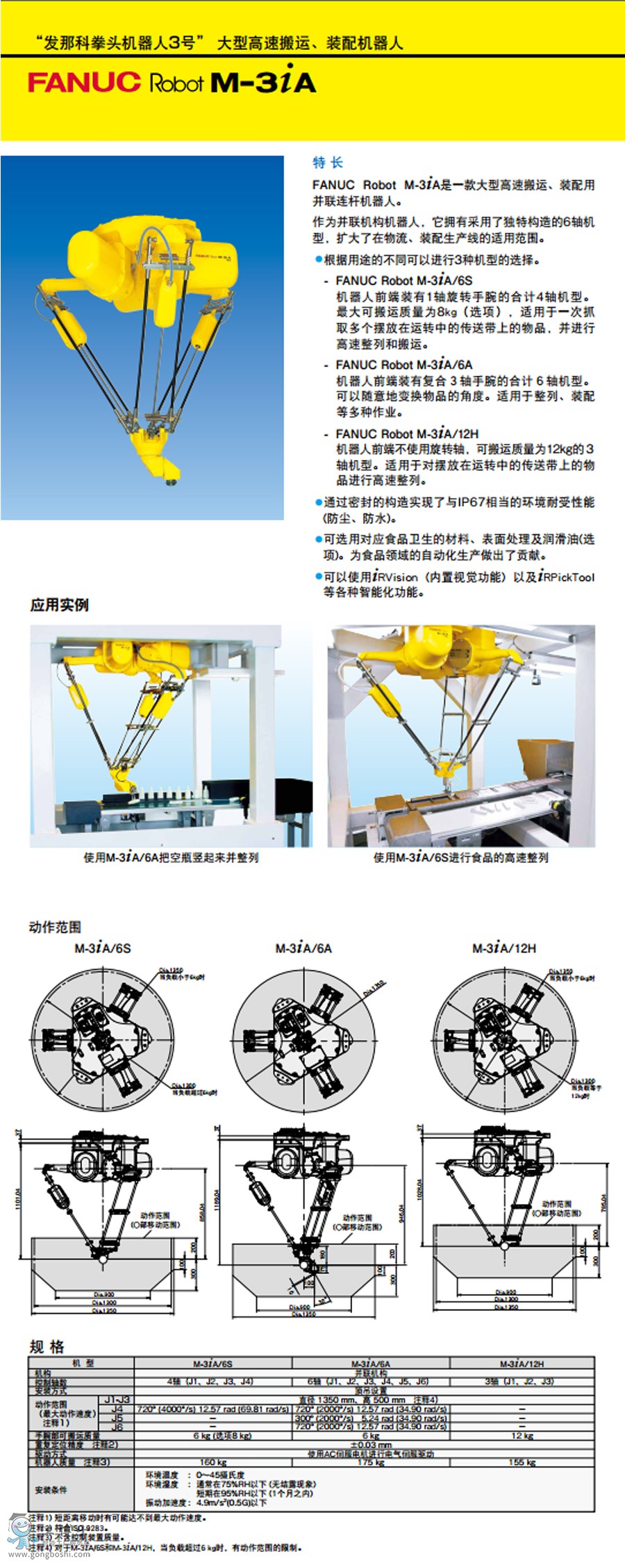發那科/FANUC M-3iA/6S 負載 6kg 工作區域 1350mm