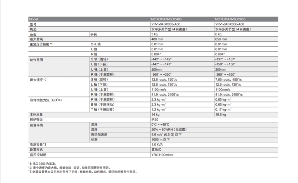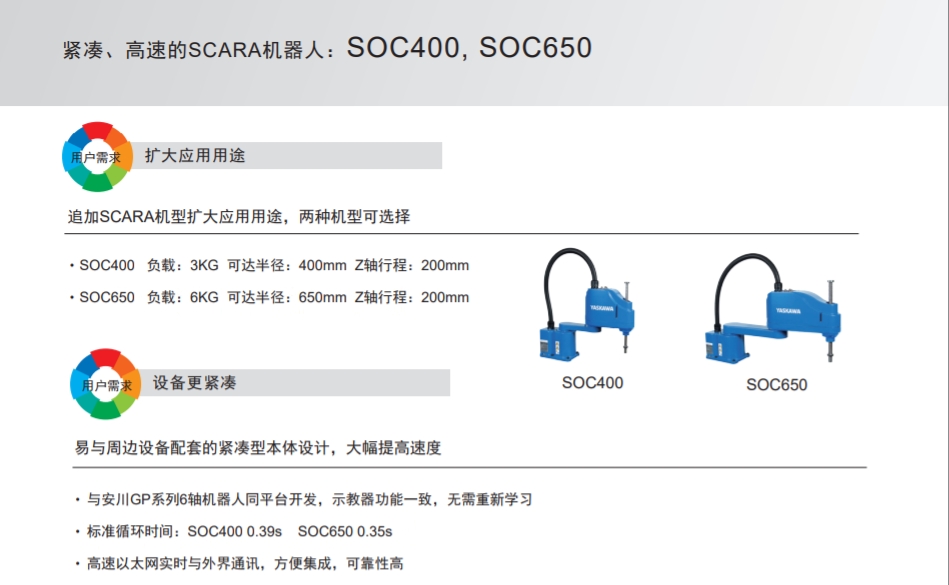 安川機器人 緊湊、高速的SCARA機器人SOC650