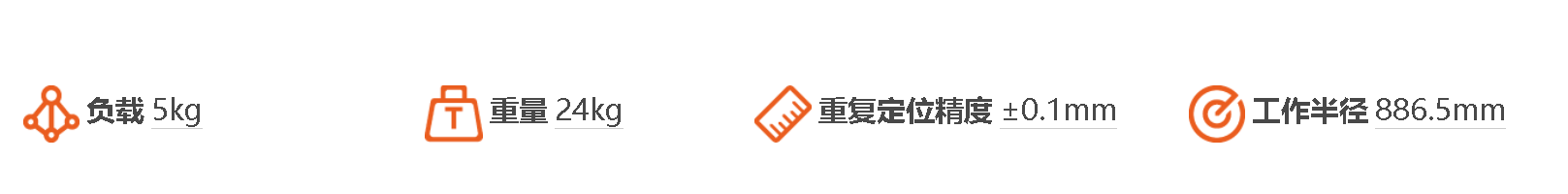負載5kg,臂展1008mm,***大工作半徑886.5mm