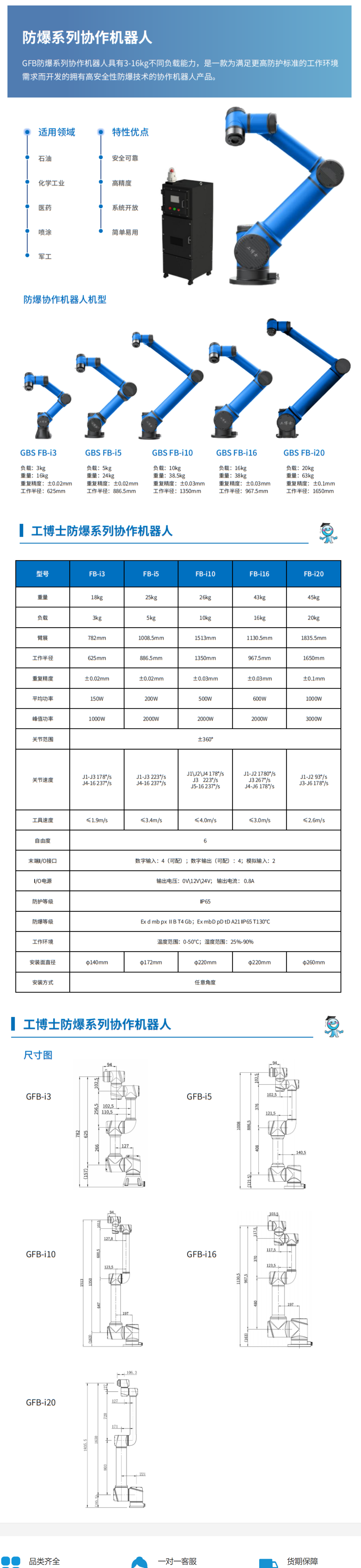 工博士防爆型協作機器人GBS FB-i10 負載:10kg 臂展:1513mm