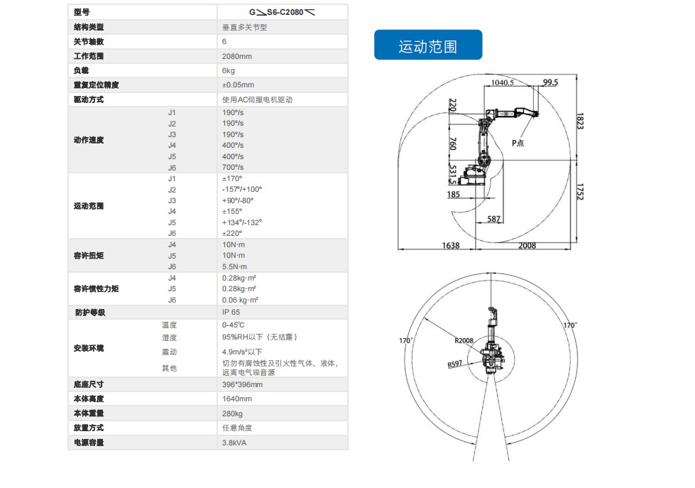 工博士機(jī)器人 GBS6-C2080X 活動半徑2080mm 負(fù)載6kg