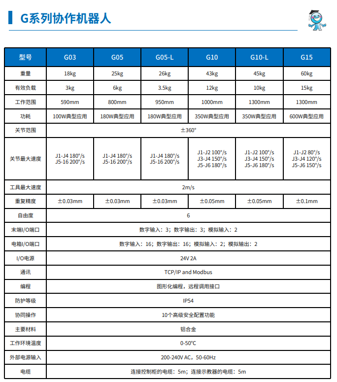 參數(shù): 工博士G系列協(xié)作機器人