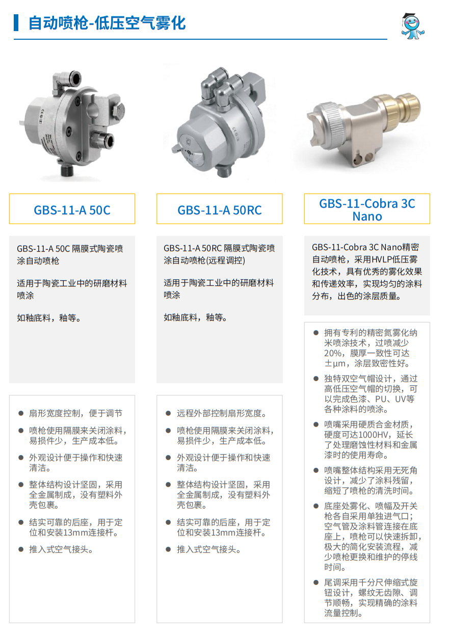工博士自動噴槍-低壓空氣霧化 GBS-11-Cobra 3C Nano精密自動噴槍