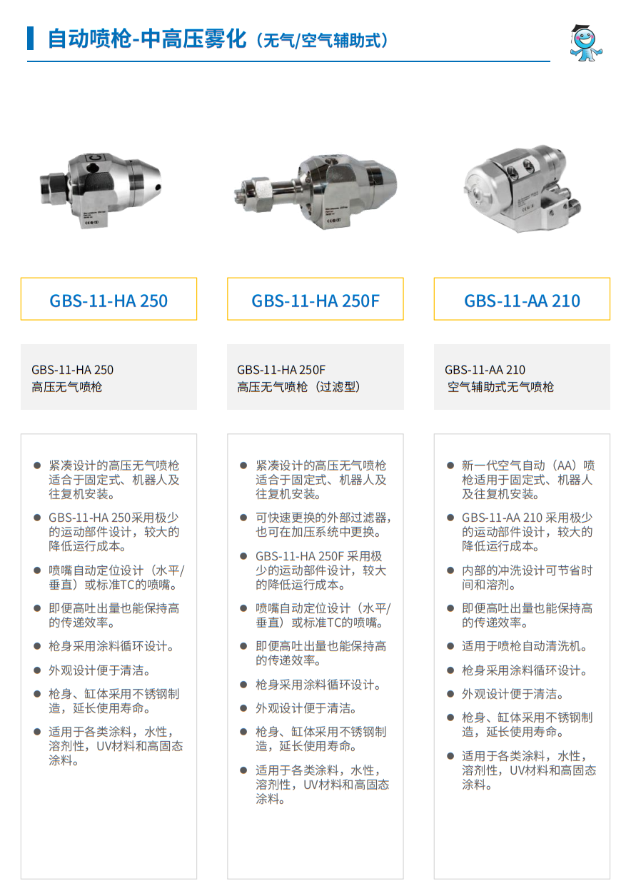 工博士自動噴槍-中高壓霧化(無氣/空氣輔助式)GBS-11-AA 210空氣輔助式無氣噴槍 |
