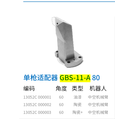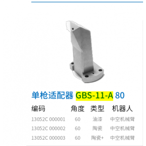 單槍適配器 GBS-11-A 80 編碼角度類型機器人 13052C 000001 60油漆中空機械臂 13052C 000002 60陶瓷中空機械臂 13052C 000003 60陶瓷+中空機械臂
