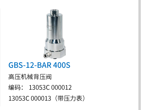 工博士GBS-12-BAR 400S高壓機械背壓閥帶壓力表