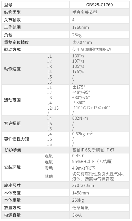 工博士 GBS25-C1760沖壓型工業機器人活動半徑:1760mm