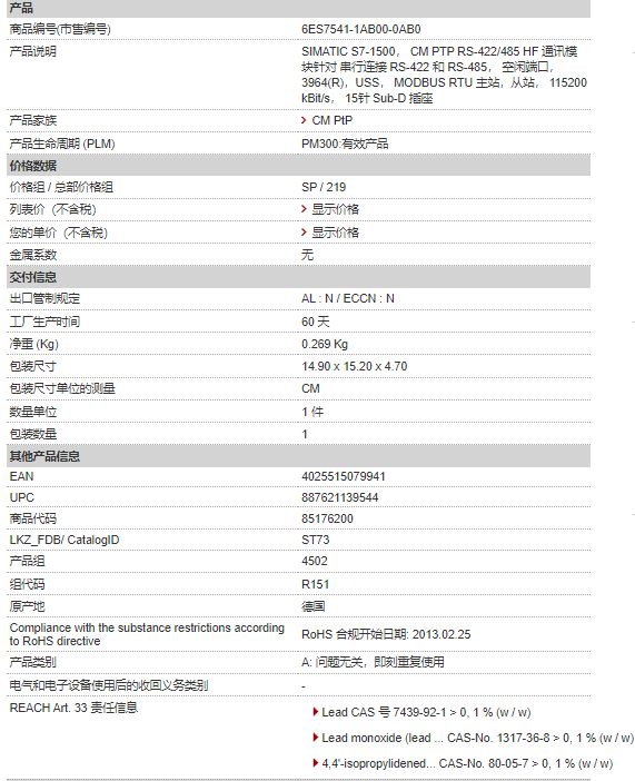 西門(mén)子PLC模塊 6ES7541-1AB00-0AB0