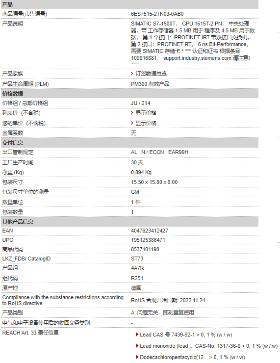 西門子PLC模塊 6ES7515-2TN03-0AB0