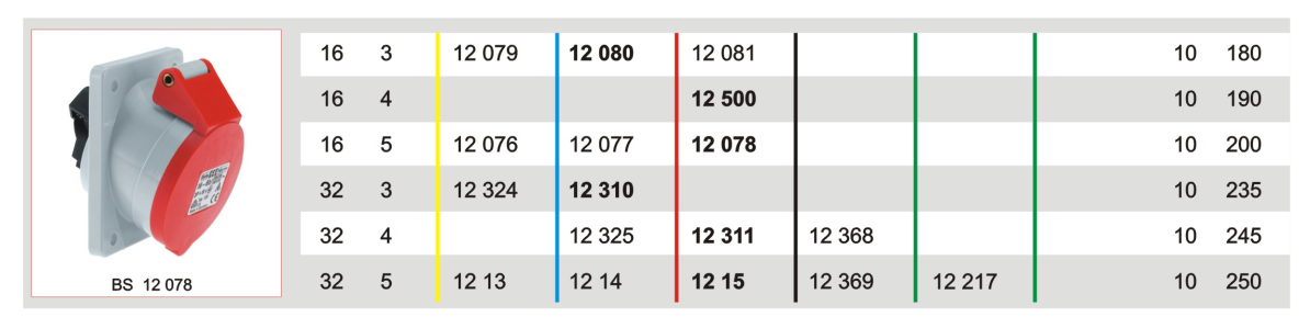 霸士BALS德國暗裝插座斜插式BS 12 078 5P/16A/400V/IP44