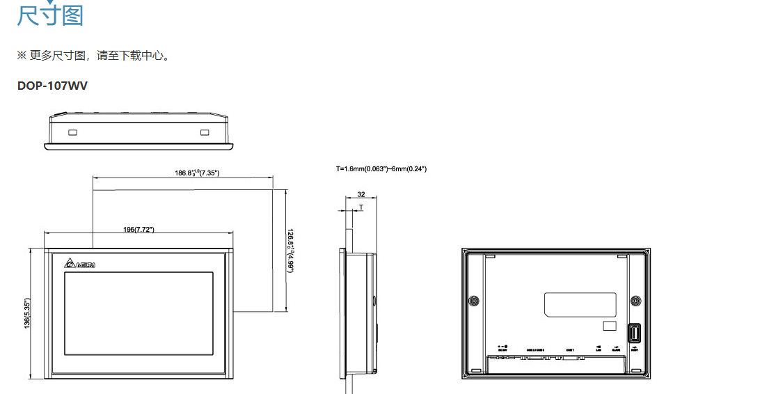 DOP-107WV 196 x 136 x 39 186.8 x 126.8